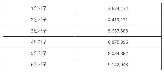 📌 기준중위소득 120% 이하 가구 (*아래표 참고)