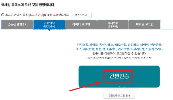 1) 홈택스 간편 인증을 통해 로그인을 먼저 해주세요.